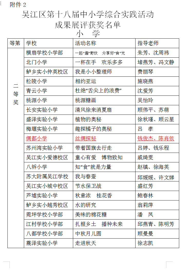 喜报:绸都小学喜获吴江区第十八届中小学综合实践活动成果展评二等奖