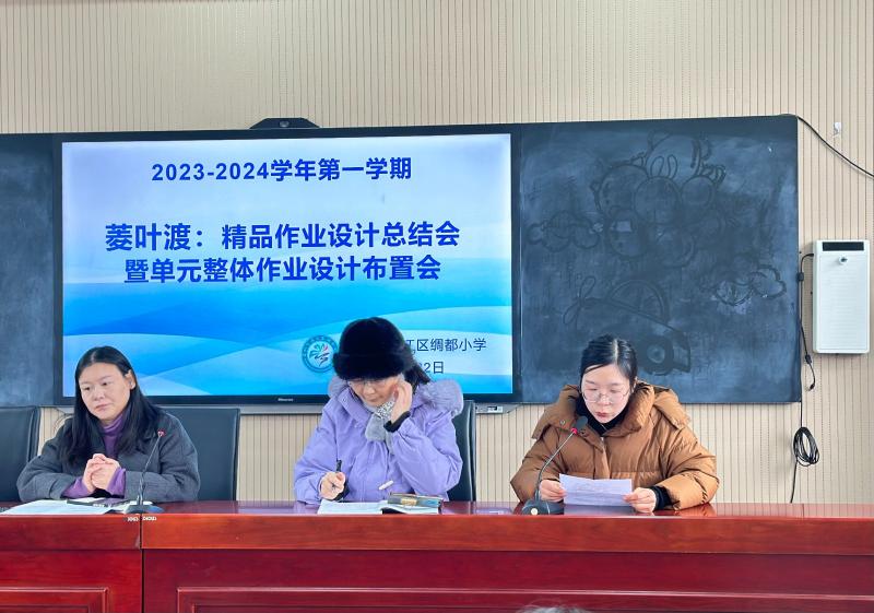 为了深化课程实施改革,落实“双减”精神,强化课程育人导向,引导广大教师深度研读新课程标准,深入钻研教材,2024年1月22日,绸都小学开展了菱叶渡:精品作业设计总结会暨单元整体作业设计布置会,教务处主任陈小英老师主持了本次会议,教学分管校长张卫娟、教务处成员以及全体教师参加了本次会议。