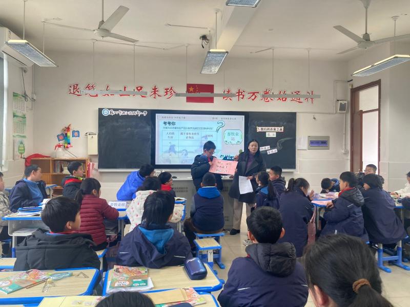 4日下午第5节课,张卫娟老师执教部编版四年级下册《道德与法治》第7课《我们的衣食之源》第二课时。课堂上,张老师通过视频、分组活动等方式,娓娓道来,用多种方式调动学生的积极性。精炼、富有感染力的语言,加之具有亲和力的教态,赢得同学们的热情回应。让学生有所感、有所悟,知道每一种物品的来之不易,生活中的每一件物品都是靠勤奋的汗水与科学的方法得来的。
