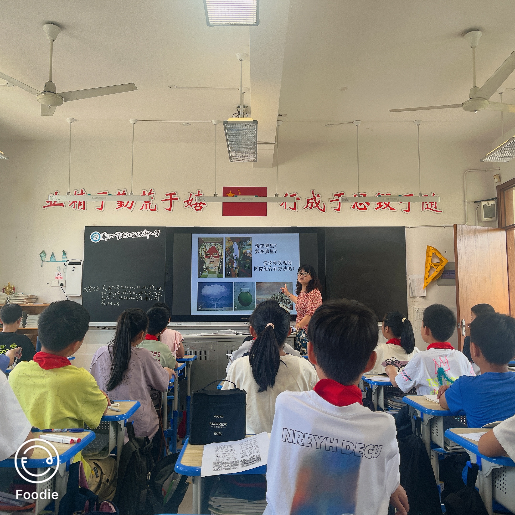 4月10日上午,绸都小学美术组举行了围绕教研活动主题“美术教学中寓教于乐的探究”开展教研活动,美术组全体成员参与了活动。活动中黄建芬老师执教《奇思妙想》,本课所呈现的艺术作品打破时空的局限,画家将生活中看似风马牛不相及的一些事情进行富有新意的表达,极大地丰富了艺术作品的表现力。教学中,黄老师引导学生在大师作品的启发下展开想象,培养他们的形象思维能力和想象力,通过体验充满童真童趣的学习活动,激发学习的兴趣。整节过程中,黄老师巧妙运用多媒体教学手段,将抽象的艺术概念形象化,使得学生们能在轻松愉快的氛围中了解和掌握知识要点,互动环节让孩子们畅游在奇思妙想中创作出一幅幅充满童趣与创意的作品。课后,美术组其他老师以新课标对艺术课程的要求和美术教学中寓教于乐主题为出发点,积极参与讨论,就自己的启发感受、困惑问题进行了深入交流,虚心学习从中汲取养分,为自己的教学工作注入新的活力。最后由黄建芬老师作教研活动小结并收集了老师们的教研活动各项材料。