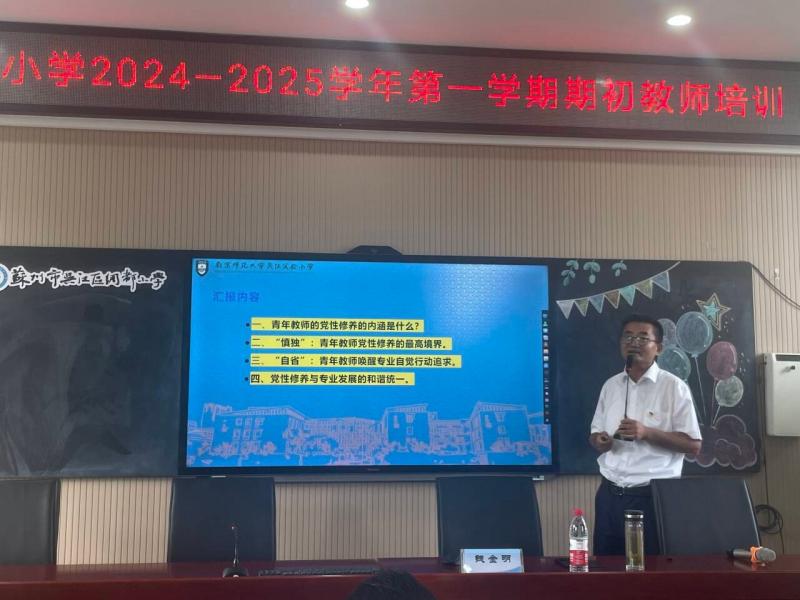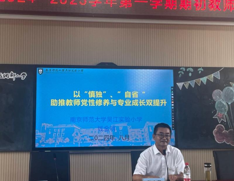 教师专业成长是指教师在专业知识、教学能力、教学方法等方面的不断提高和成长。2024年8月28日,南京师范大学吴江实验小学钱金明书记莅临绸都小学,向全体教师开展了“以‘自省’‘慎独’助推教师专业成长与党性提升”主题讲座。