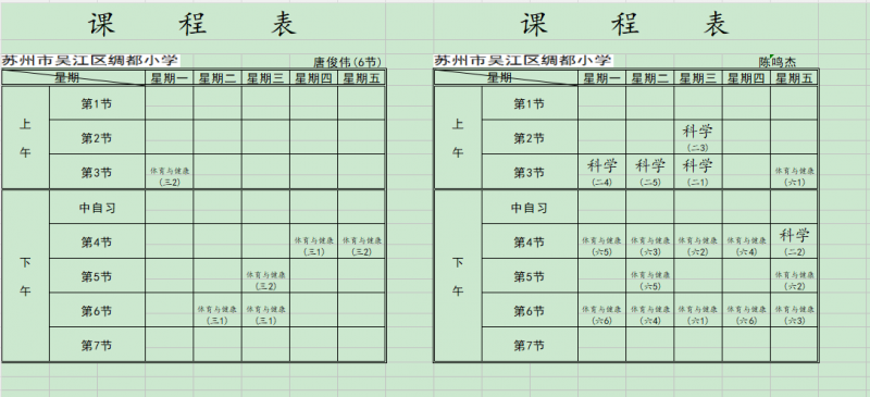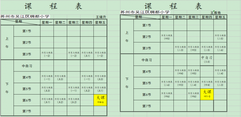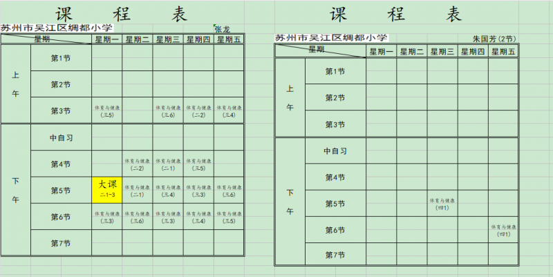 2025绸都小学体育老师课表